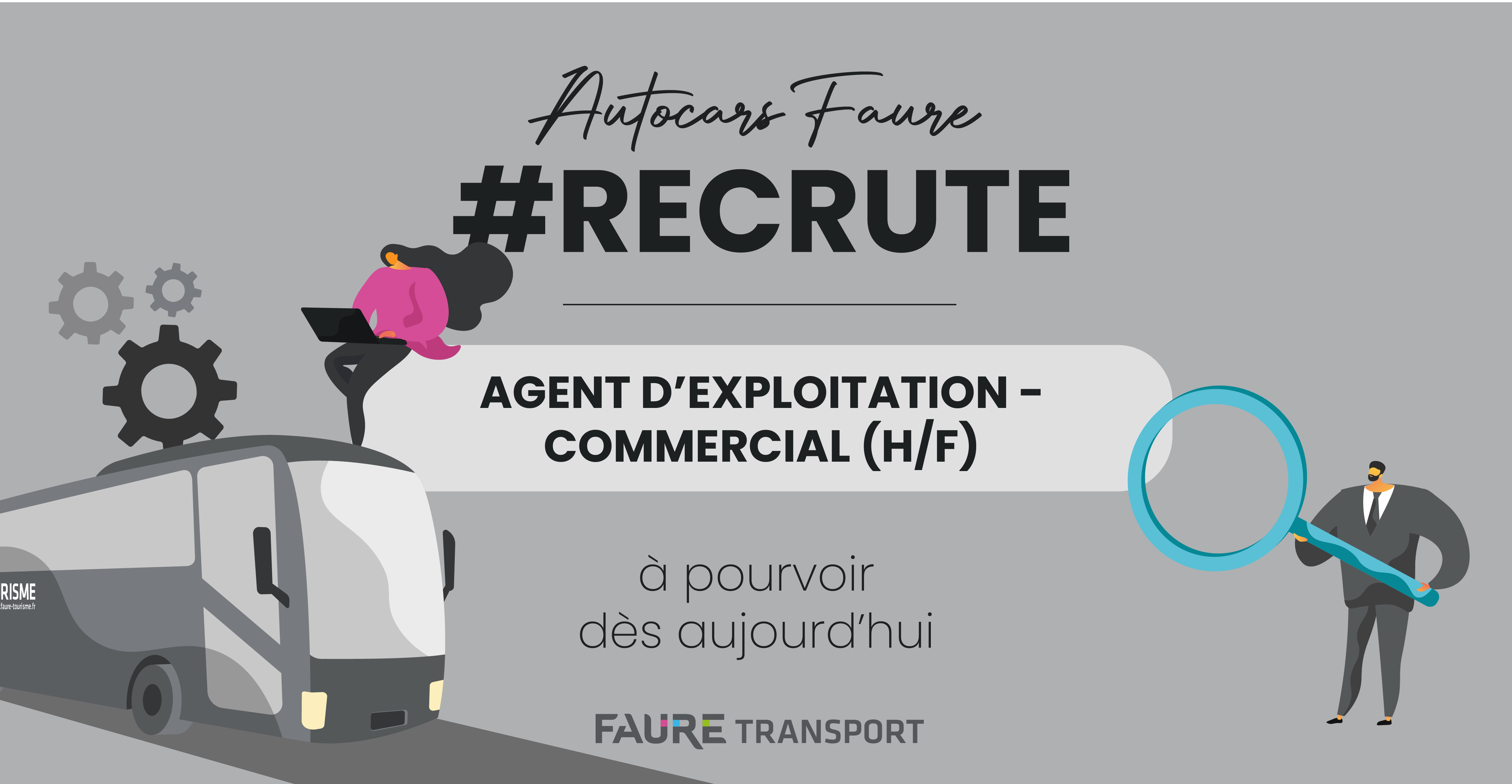 Faure Transport, transporteur privé de voyageurs en autocar dans la région Auvergne-Rhône-Alpes, recherche pour sa filiale Autocars Faure, un agent d’exploitation et assistant commercial (H/F).