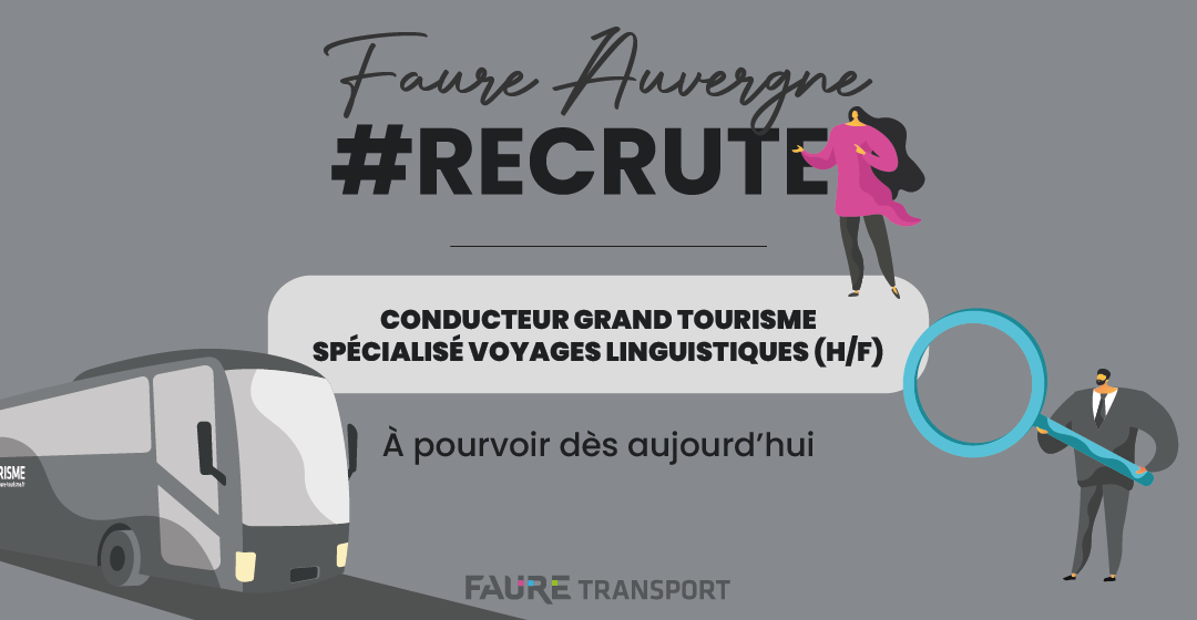 Société de Transports de Voyageurs du groupe Faure Transport, recherche un ou deux conducteurs Grand Tourisme avec une expérience en voyages linguistiques pour notre filiale Faure Auvergne.