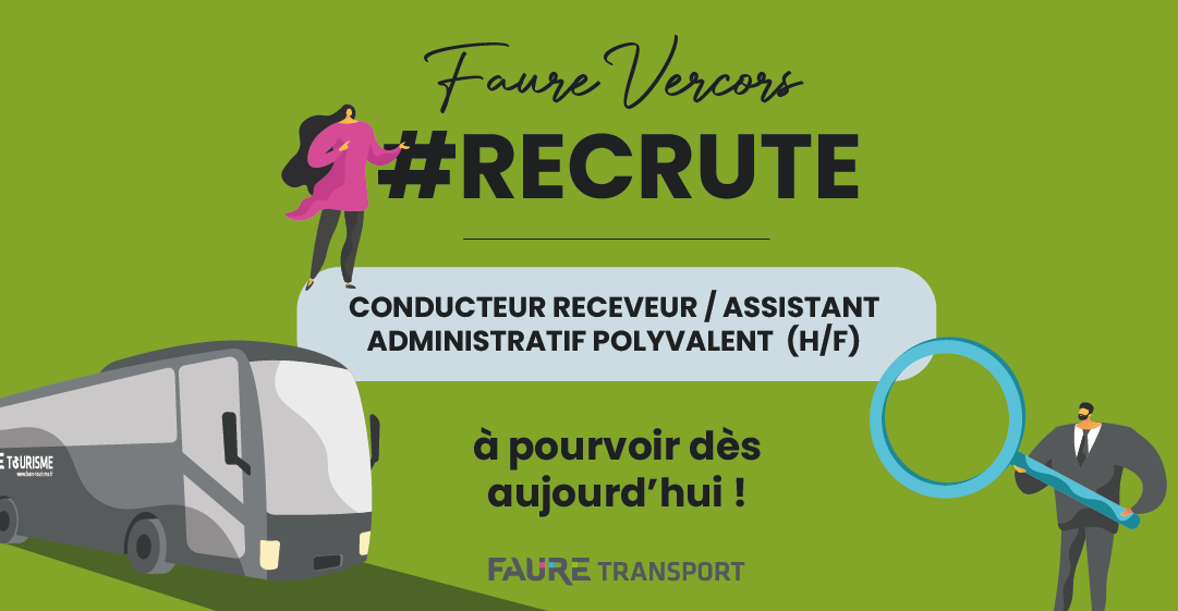 Société de Transport de Voyageurs du Groupe Faure Transport, recherche pour notre filiale Faure Vercors, un conducteur receveur et assistant administratif polyvalent (H/F), pour assurer de la conduite, services scolaires, occasionnels et les diverses tâches administratives liées à l’activité du centre.